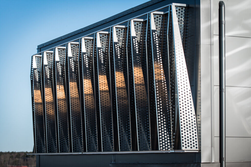 LWAB fick förtroendet av Peab att montera väggar av sandwichelement på två fläktrum på en totalyta om 1600 kvadratmeter väggyta som dekorbekläddes med perforerade aluminiumpaneler. Vi utförde även påtarbetet som innefattade krönbeslagningar och vägtäckningar. Dessutom tillverkade och monterade vi prefererade aluminiumkassetter samt paroc-element runt dom båda fläktrummen.